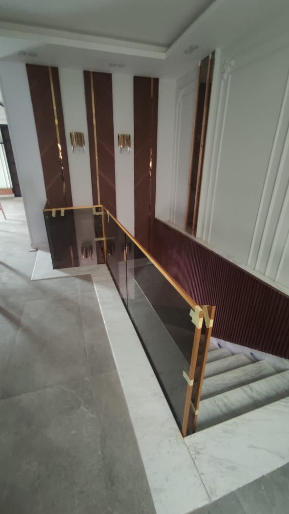 مظهر راقٍ: يمنح الدرابزين الزجاجي إطلالة مشرقة وأنيقة بفضل ألوانه الشفافة أو المعتمة.